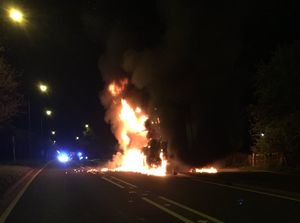 Pictures taken at the scene showed flames leaping out of the HGV as thick black smoke poured into the sky.