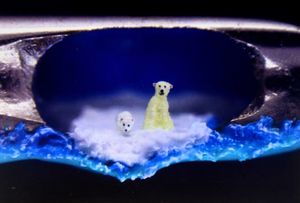 The exhibition contains 24 display towers housing the detailed artworks under a protective dome.