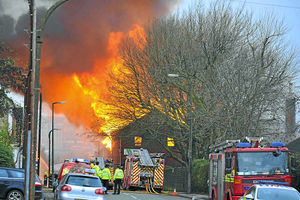 Plumes of black smoke filled the skies across the borough as flames towering above rooftops were just feet away from properties on nearby Hall Street.