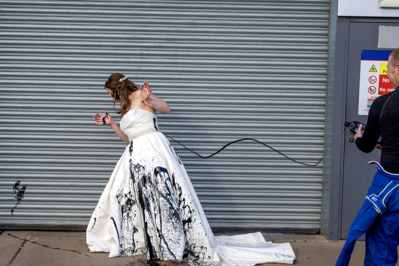 This pair of racing drivers tied the knot with a motorsport themed wedding, and followed it up with a special photo shoot – and the destruction of the bride’s wedding dress – at Donington Park.
