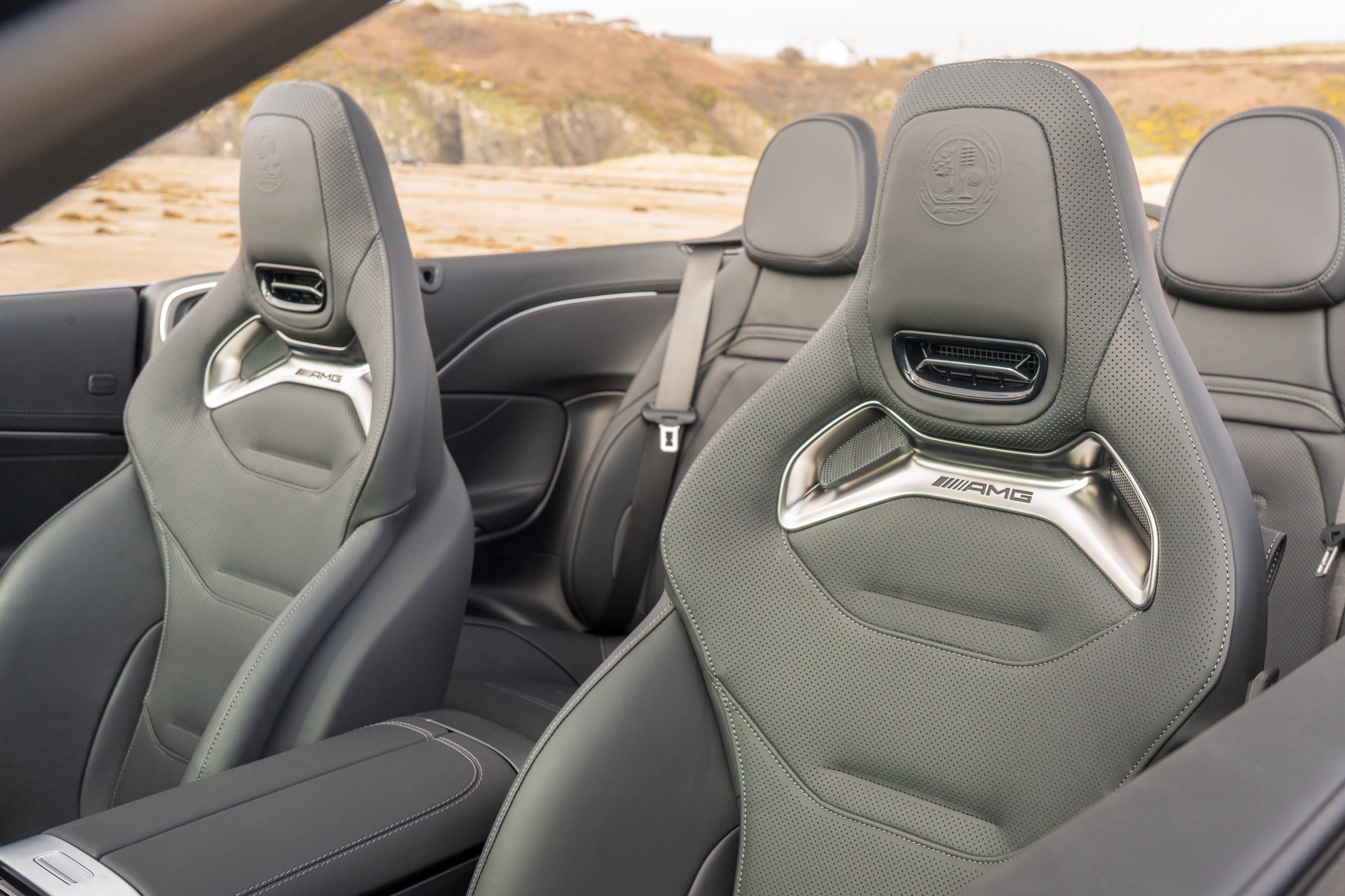 Like nearly all current Mercedes cars, the interior of the CLE53 Cabriolet is dominated by technology. There’s a huge central screen which controls all of your main media and navigation demands, as well as a secondary display ahead of the driver. Material quality is, largely, quite good, but the fit of some trim pieces feels a little down on what you’d expect from Mercedes. The centre console, in particular, feels a bit flimsy.