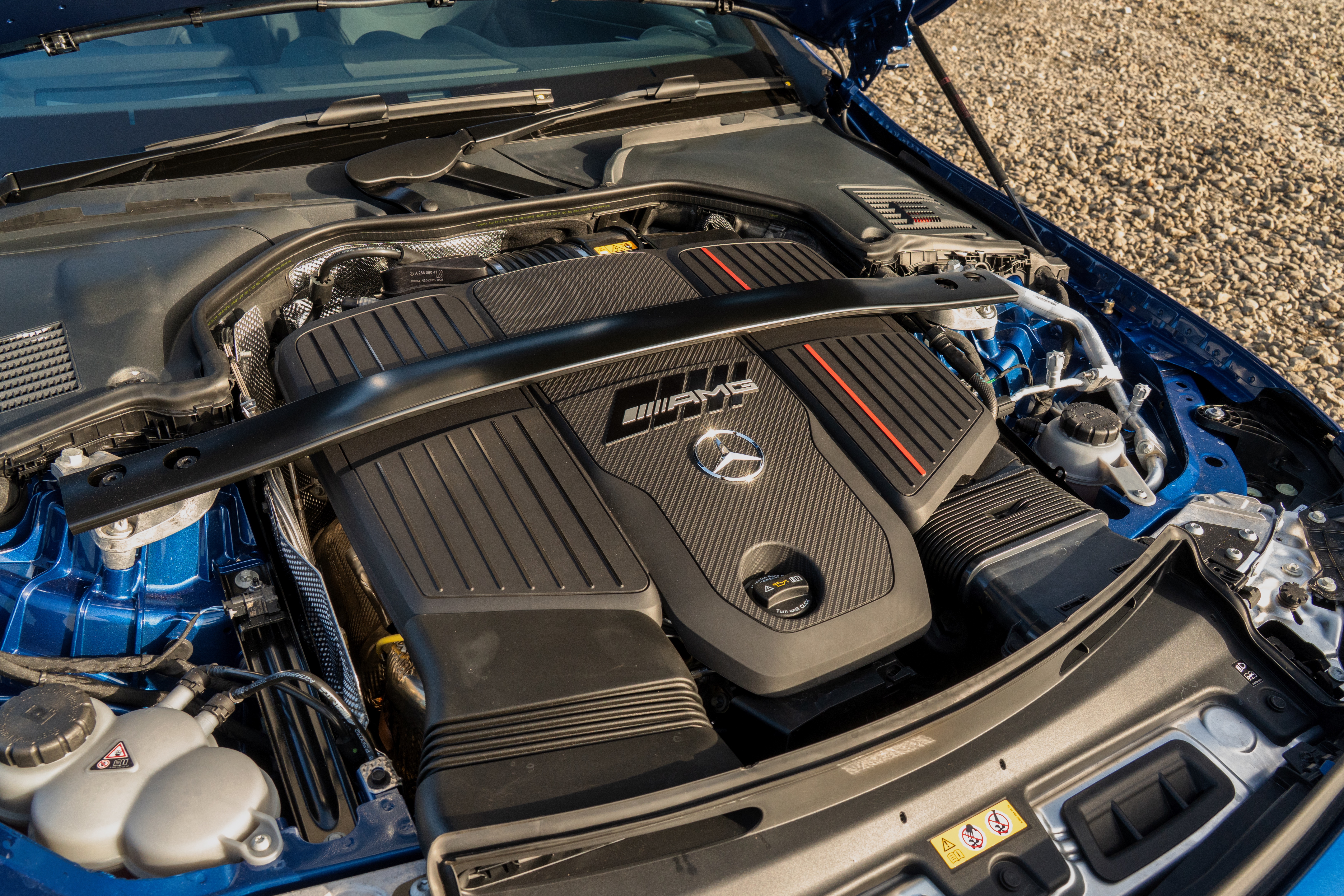 There are quite a lot of classic AMG touches going on here. We’ve got big, blistered arches to accommodate a wider track and larger wheels, while the brakes and suspension have been sharpened to create a more involving experience. There’s plenty going on under the bonnet, too – more on that shortly – and a trick exhaust is here to make the whole thing sound a little better.