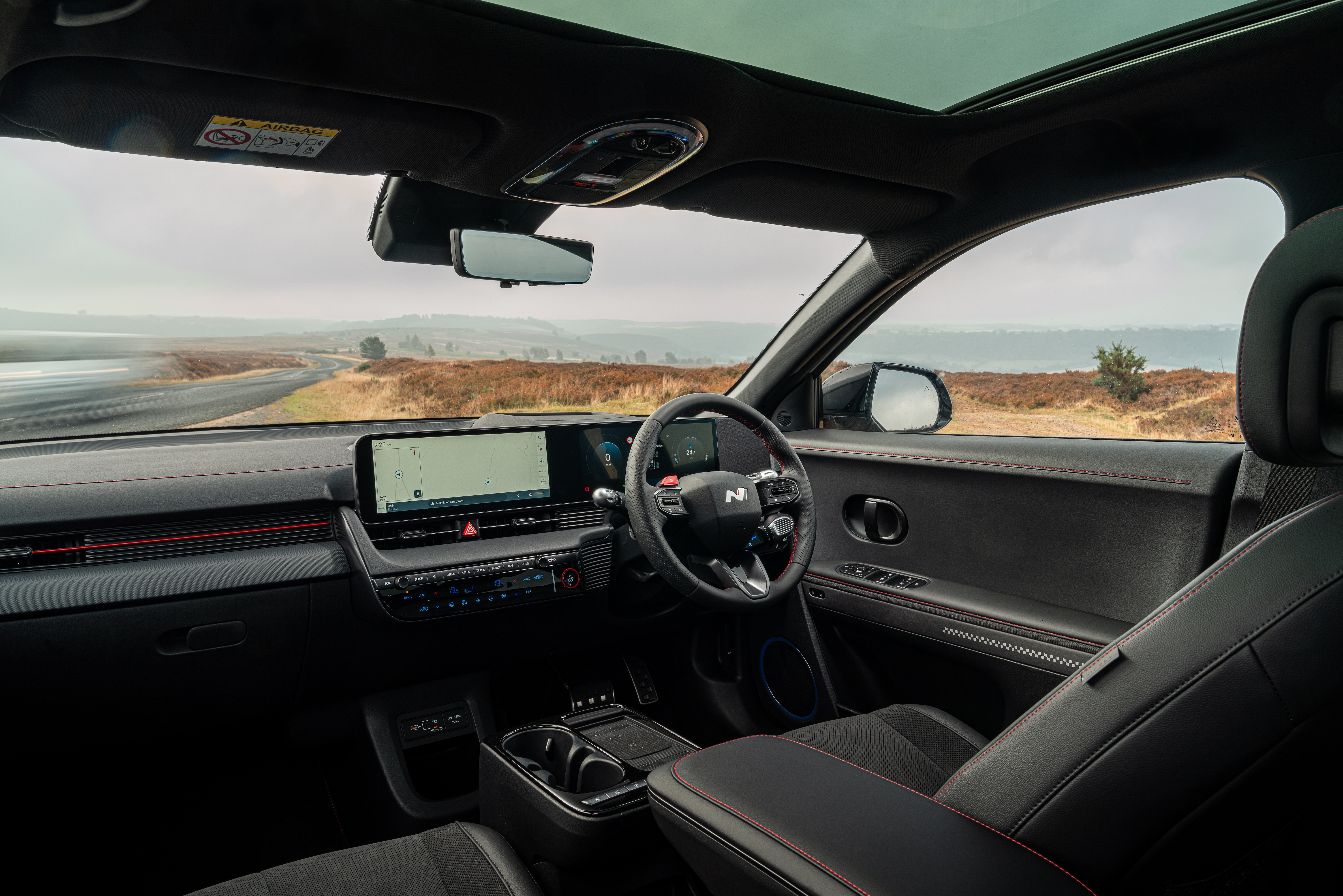 The interior is just as futuristic as the exterior, with there being two 12.3-inch screens, which are clear and easy to use. Our N Line S car also comes with an ‘N’ sports steering wheel, half leather and Alcantara seats, sports pedals and red stitching.