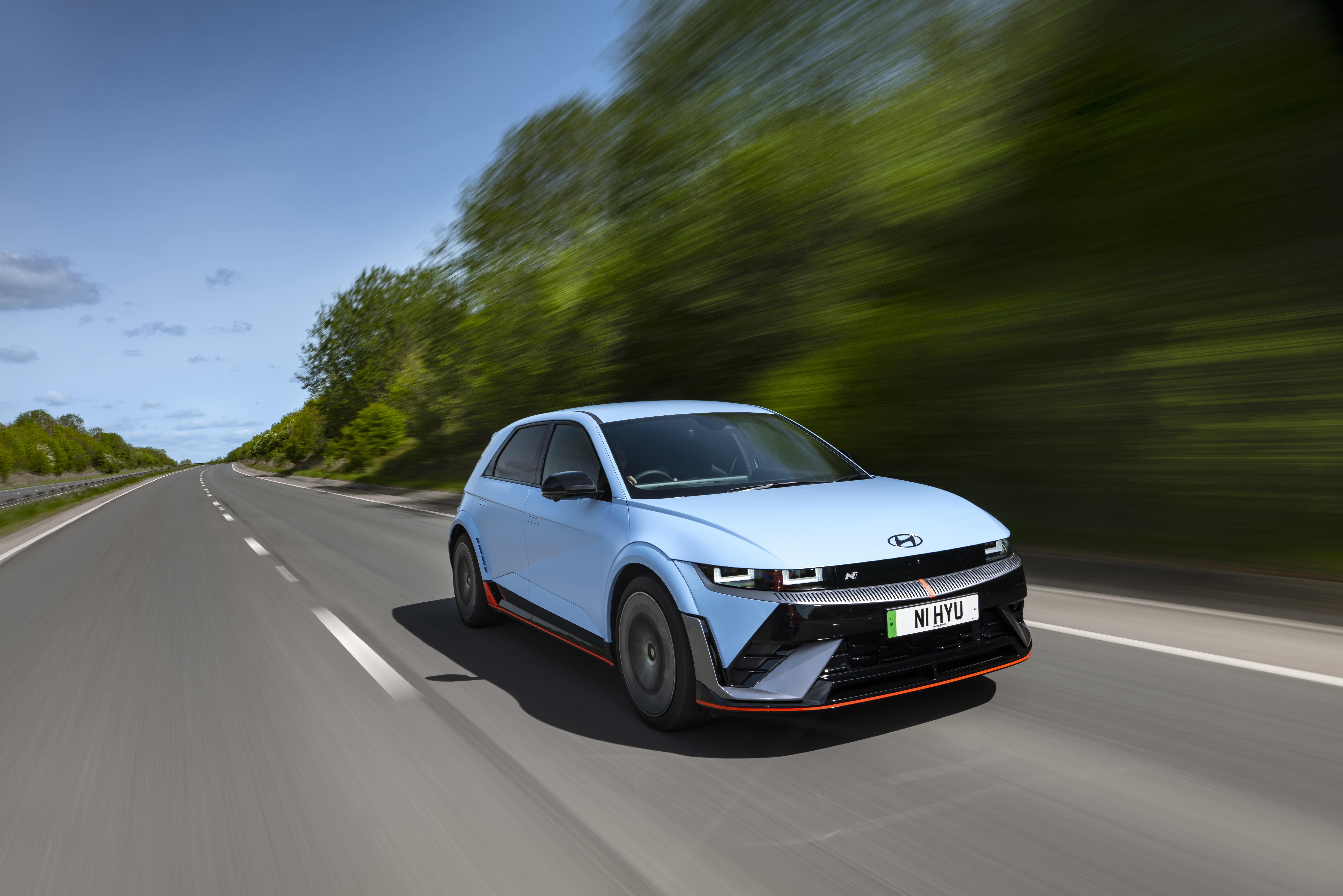 The N also looks the part with flared wheel arches, massive wheels, side skirts, a rear spoiler, body-hugging bucket seats and lots of blue ‘N’ detailing. If you love driving, but need an EV, then this is the car for you.