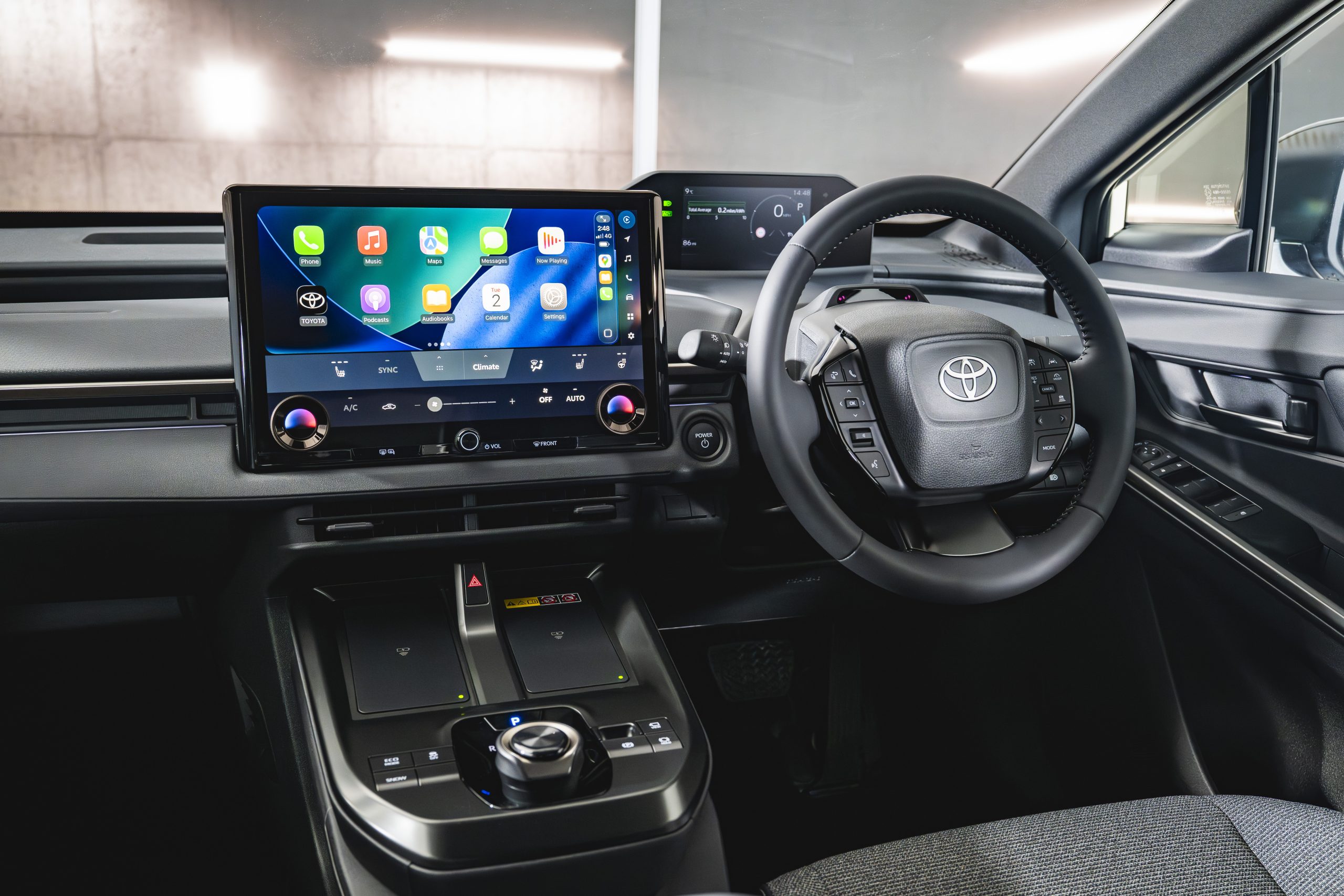 The changes to the interior initially look subtle, but Toyota has actually changed rather a lot. There’s a differently styled dashboard, a new, larger and crisper 14-inch touchscreen, an easier-to-read driver’s display, and a centre console that juts out from the fascia rather than being connected to it. The latter is a far better design as it incorporates the smartphone charging pad in a neater way, and the quality feels better than before.