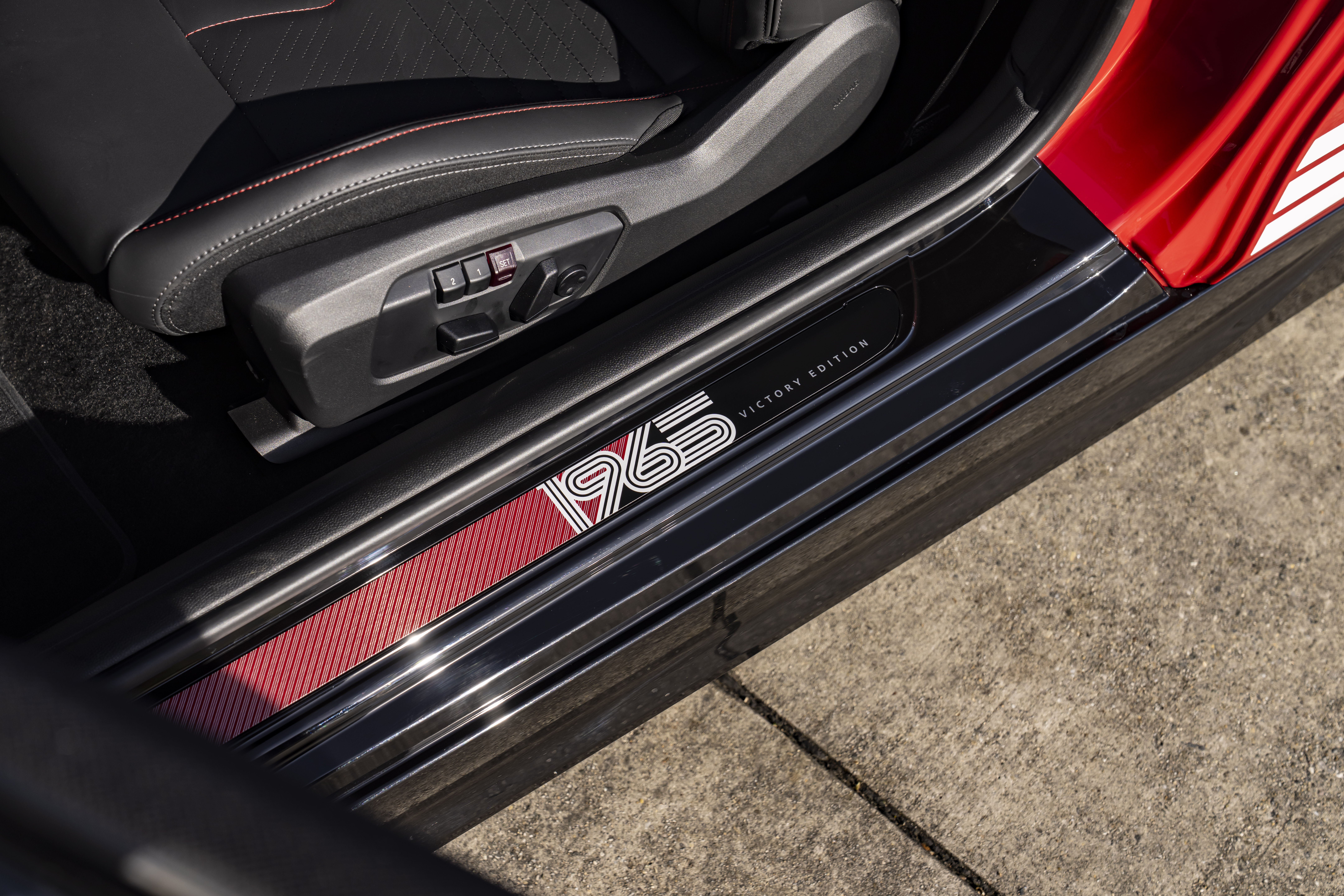 The interior also gains ‘1965’-lettering on the steering wheel spoke and centre console storage box, plus all cars come with anthracite and red seat upholstery.