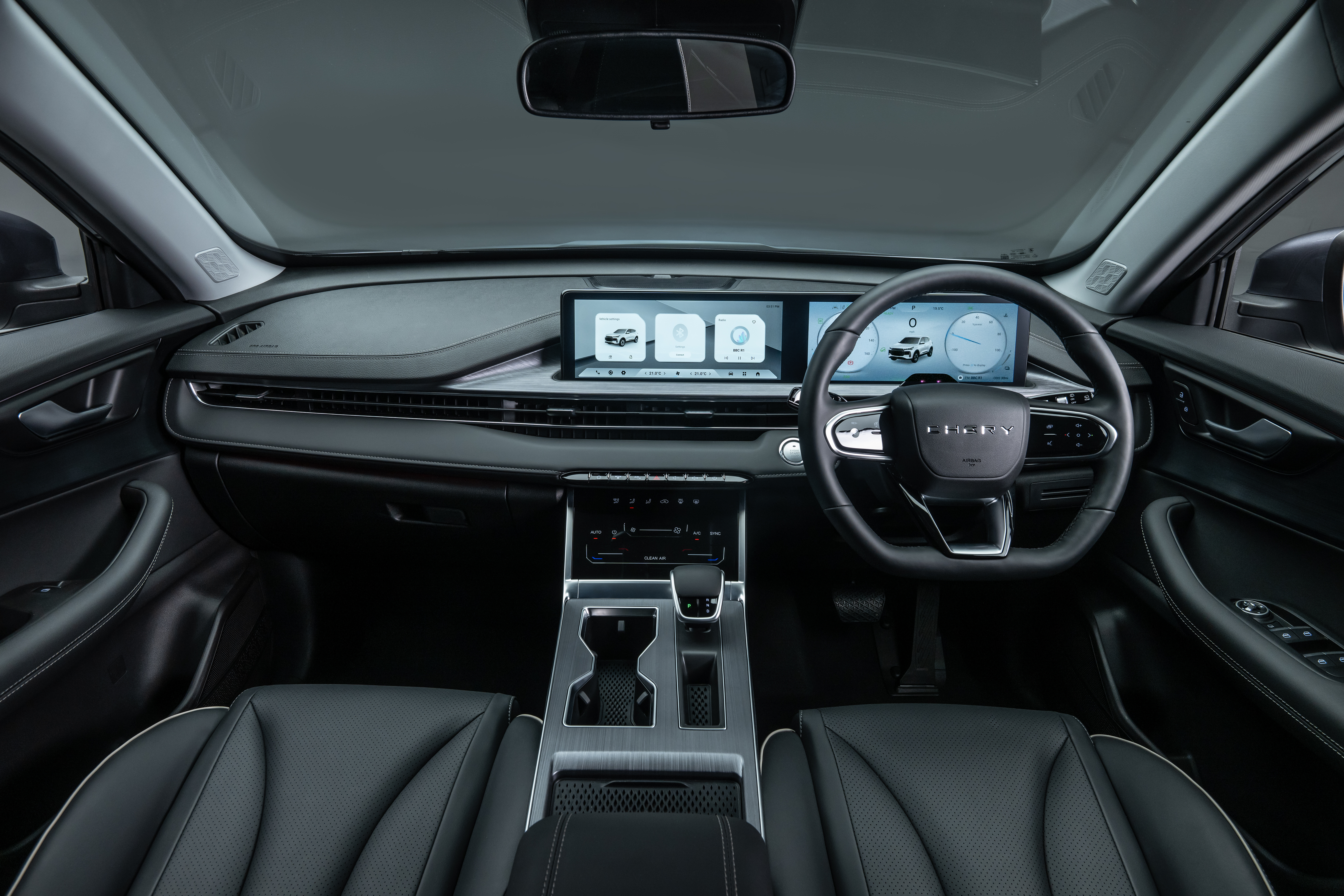 Inside, there is space for five occupants and a digital driver’s display, a touchscreen interface system, physical shortcut buttons and climate control dials located at the top of the centre console.