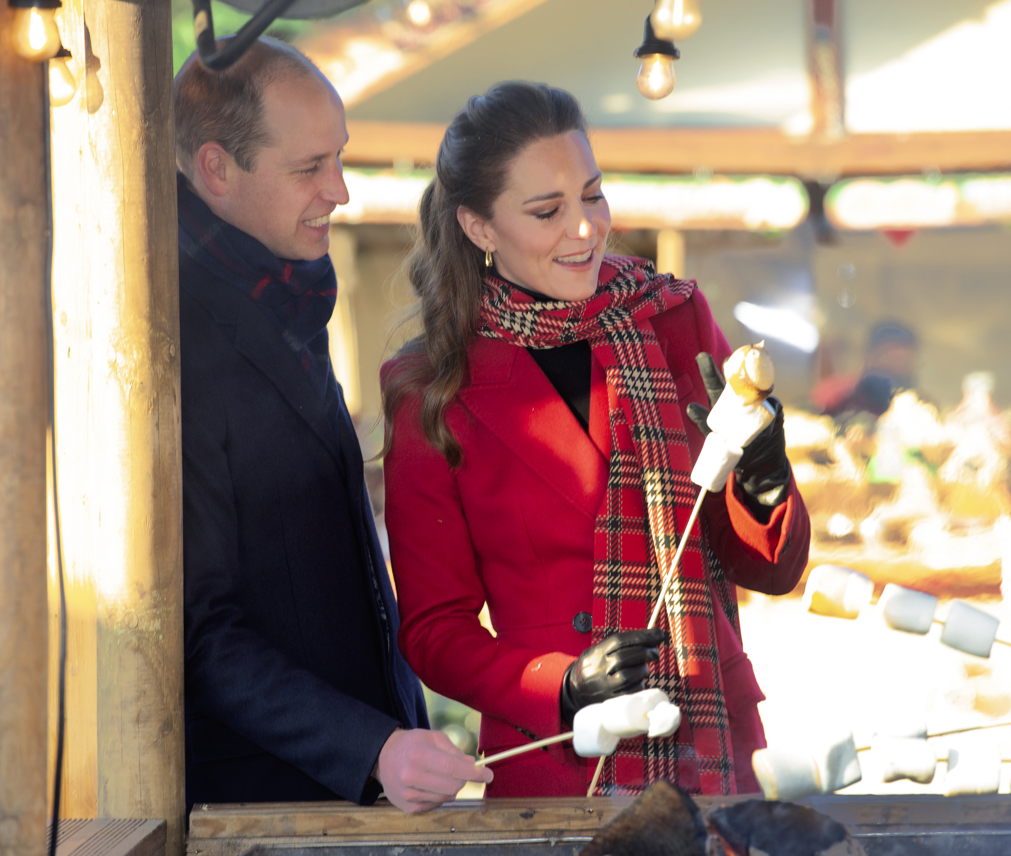 The Duke and Duchess of Cambridge toast marshmallows during a visit to Cardiff Castle in December during their three-day royal train trip to thank keyworkers around the country (Jonathan Buckmaster/Daily Express/PA)