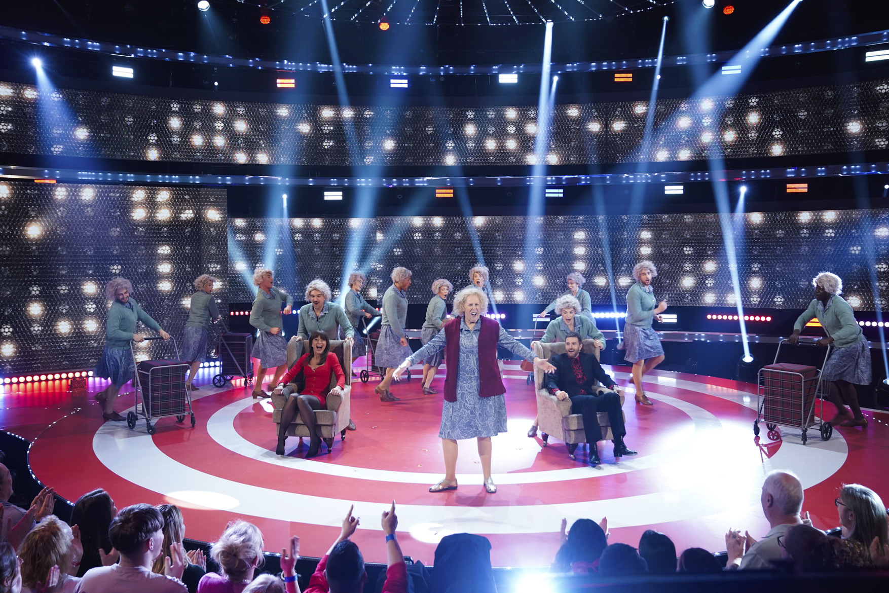 Catherine Tate as Nan and her army of grandmas at the start of the show (BBC/Comic Relief 2025/James Stack/PA)