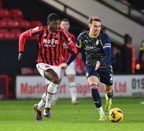 After another quiet spell, a well-worked move down the right flank ended with Connor Barrett crossing for a leaping Vincent Harper, whose goal-bound effort was blocked.