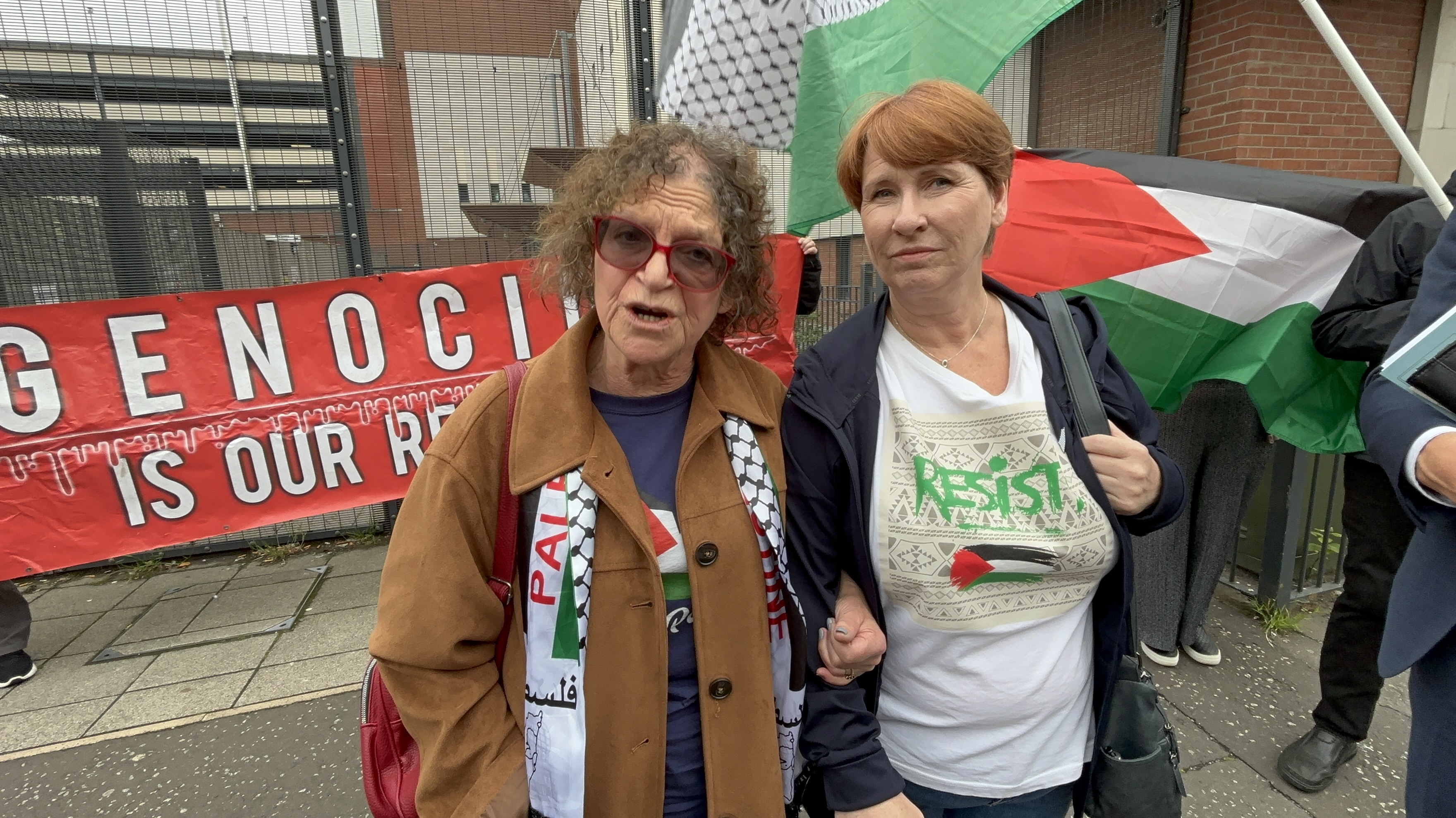 “We’re two grandmothers, when our grandchildren ask us what we did, we know what we’ll say, we stood up, we spoke out, we weren’t silent, and as a Jewish person I am absolutely ashamed of anybody either Israeli Jewish or London Jewish or wherever who doesn’t stand up and who thinks this is OK.”