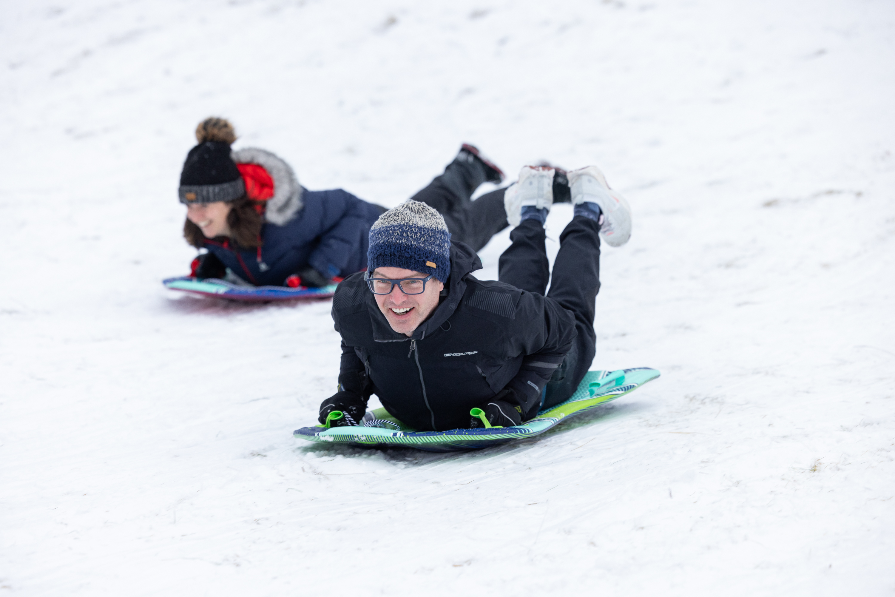 The chilly weather was ideal for sledging and snowballs.