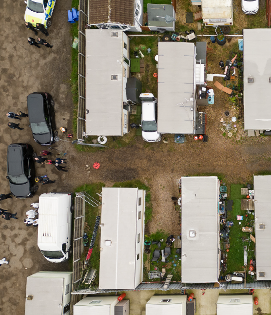 The caravans in Buckles Lane, South Ockendon, Essex (Metropolitan Police/PA)