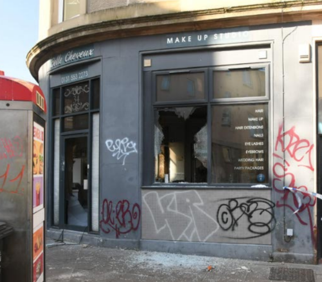 The Belle Chevaux beauty salon is thought to have been the first to be targeted with such an attack in a feud between rival gangs, which saw a number of incidents in the east and west of Scotland.